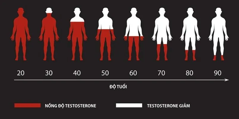 Khi tuổi càng cao thì các hoạt động của các bộ phận trong cơ thể dần bị suy thoái, Testosterone được sản sinh từ tinh hoàn cũng không ngoại lệ. Khi bước qua độ tuổi 30, các chức năng trong cơ quan sinh dục của nam giới có dấu hiệu bị suy thoái dần. Điều đó kéo theo là tình trạng giảm ham muốn tình dục. Một nghiên cứu trên thế giới cho biết, Testosterone tự do giảm 2,8% mỗi năm; Testosterone toàn phần giảm 1,6% mỗi năm; Testosterone gắn albunine giảm 2,5% mỗi năm.